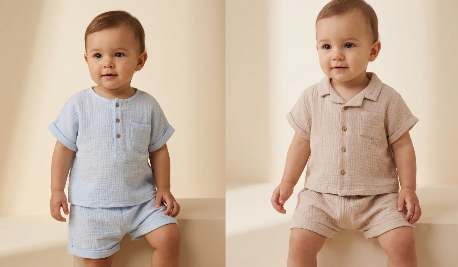Organic Cotton Two Piece Shorts Set - BeigeVendor: TEDDY & MINOUOrganic Cotton Two Piece Shorts Set - Beige- Regular price